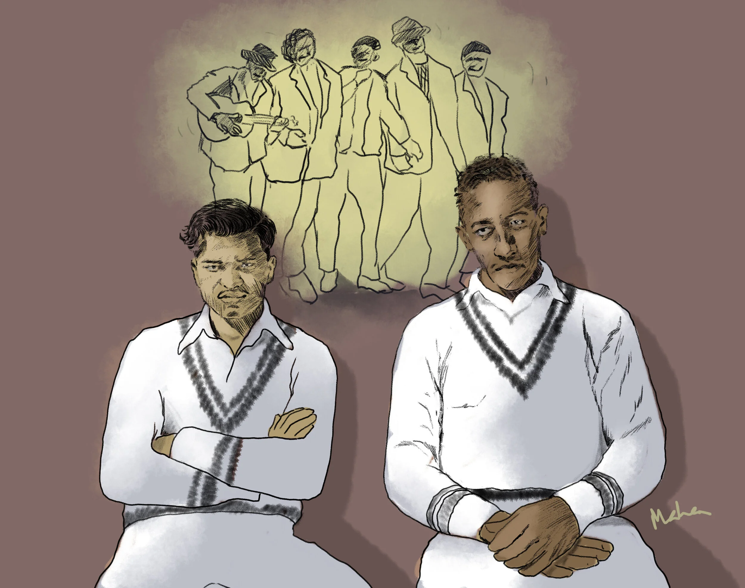 Valentine bowled left-arm orthodox, and was short sighted. No one knew it yet, but midway through the series, when asked the score he could not read the giant figures on the scoreboard. He started wearing glasses. It made him look anything but a cricketer, did not alter his bowling, and he remained as lousy as ever with the bat.