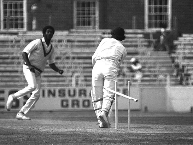 Once Peter Wiley had succumbed to Vanburn Holder, captain Greig came in to bat for the last time in the nightmarish series. And Holding charged in, rhythmic and graceful, poetry in motion, the Rolls Royce of fast bowlers, and sent his stumps on a stroll with a lightning-fast yorker.